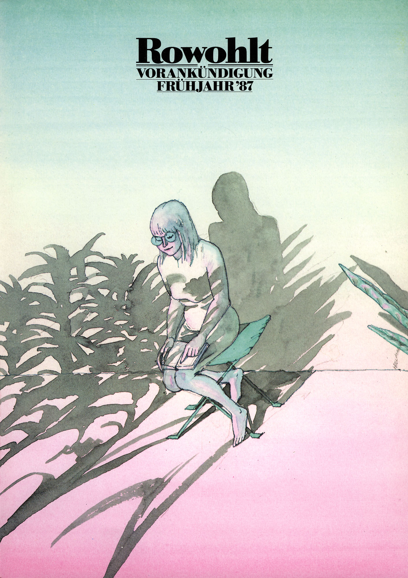 Rowohlt – Vorankündigung (Frühjahr 87)Jahr: 1987Medium: BroschürenumschlagMaße: 21x29,7 cmTechnik: OffsetdruckAuftraggeber: Rowohlt VerlagOrt: ReinbekKeine Beschreibung