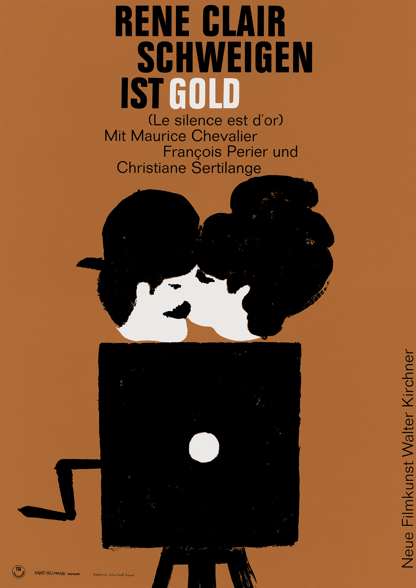 Schweigen ist GoldJahr: 1960Medium: PlakatMaße: 59,4x84,1 cm (DIN A1)Technik: OffsetdruckAuftraggeber: Neue Filmkunst Walter KirchnerOrt: GöttingenKeine Beschreibung