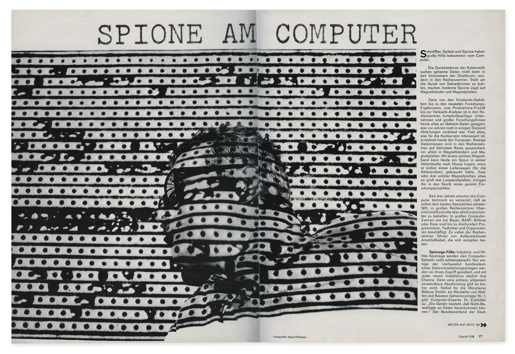 Die Fotografie entstand als Illustration zu einem Artikel zu Spionage in Computersystemen für das Wirtschaftsmagazin Capital. Der Auftrag erfolgte durch den früheren Hillmann-Studenten Helmut Schmidt-Rhen, der nach seinem Studium Art Direktor der Zeitschrift wurde. Hillmann fotografierte sich für das Motiv mit Selbstauslöser vor der Projektion eines abstrakten Musters.