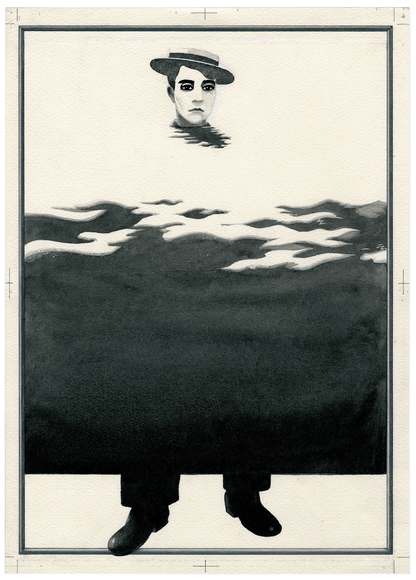 Steamboat Bill Jr. (Entwurf)Jahr: 1973Medium: EntwurfMaße: 29x40 cmTechnik: AquarellzeichnungAuftraggeber: Neue Filmkunst Walter KirchnerOrt: GöttingenKeine Beschreibung