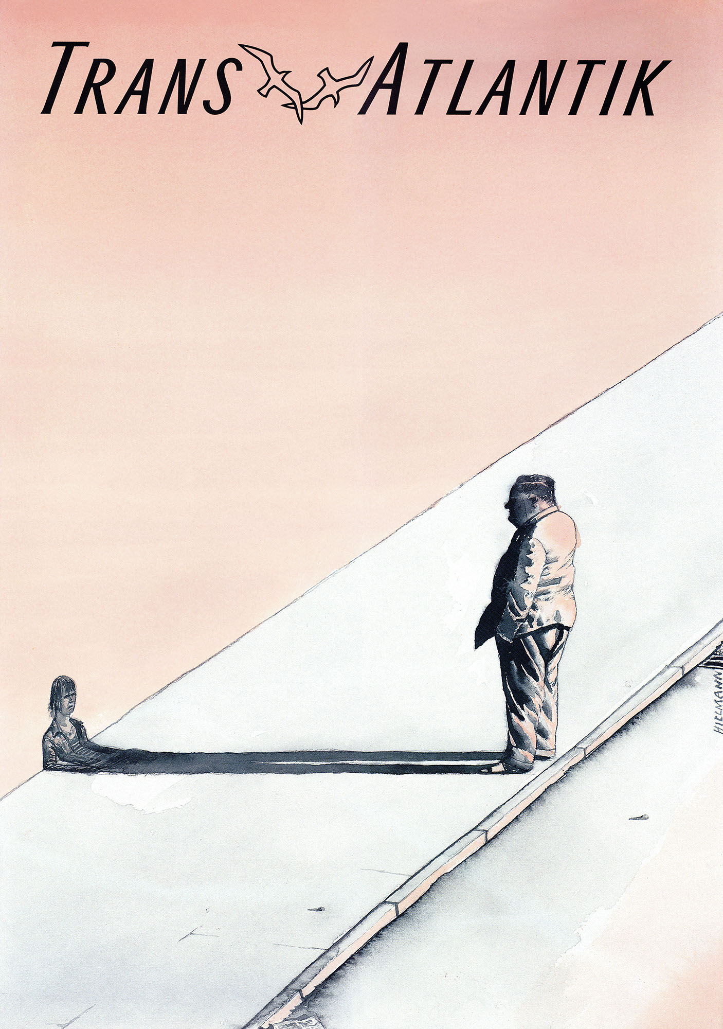 Das Plakat zeigt Hans Hillmanns Titelillustration für die Erstausgabe von TransAtlantik aus dem Jahr 1980. Es wurde in kleiner Auflage für die Leserschaft des Magazins gedruckt.