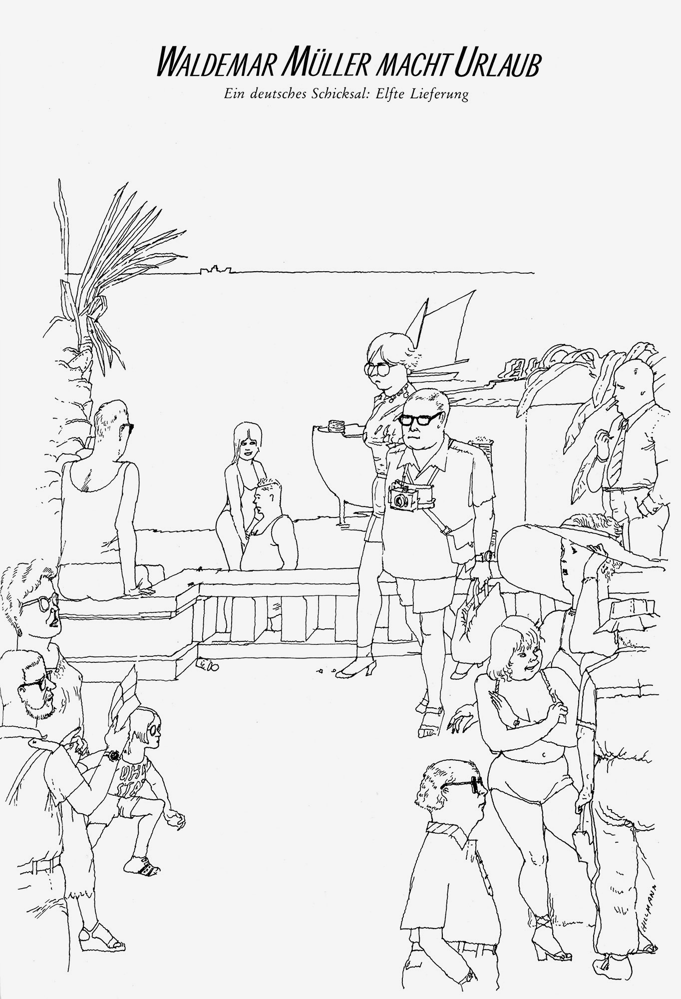Waldemar Müller macht UrlaubJahr: 1981Medium: MagazinillustrationMaße: 21x30 cmTechnik: OffsetdruckAuftraggeber: TransAtlantik VerlagOrt: Frankfurt am MainAbgedruckt in »TransAtlantik«, Nr. 4/1981.