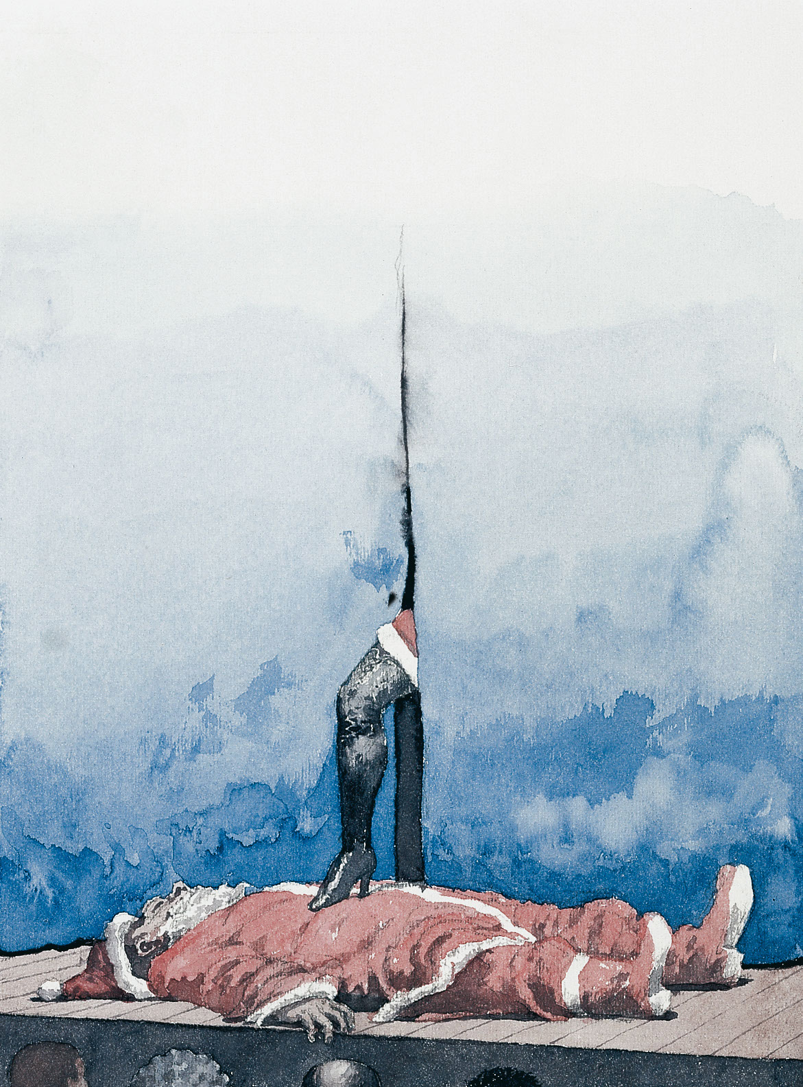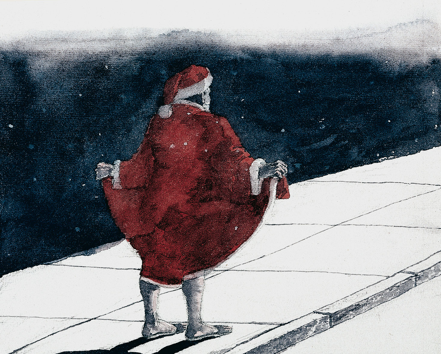 Weihnachten in der KriminalliteraturJahr: 2001Medium: IllustrationMaße: 23x20,5 cmTechnik: AquarellzeichnungAuftraggeber: EigenauftragOrt: Frankfurt am MainKeine Beschreibung